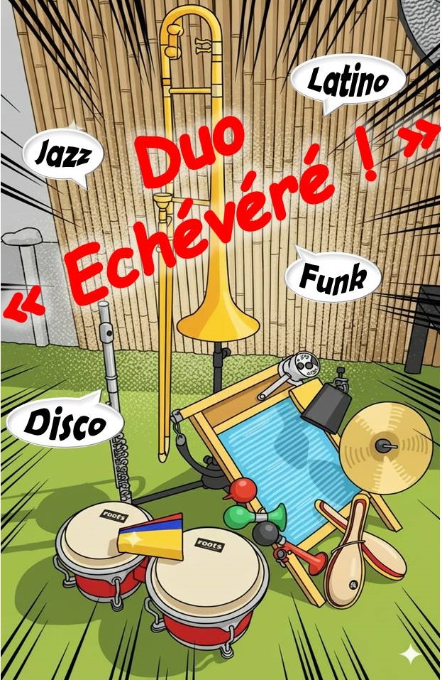 Duo de percussions, Trombone, flûte et Chant qui interprète des standards de Jazz, Latino, Funk et Disco avec originalité.